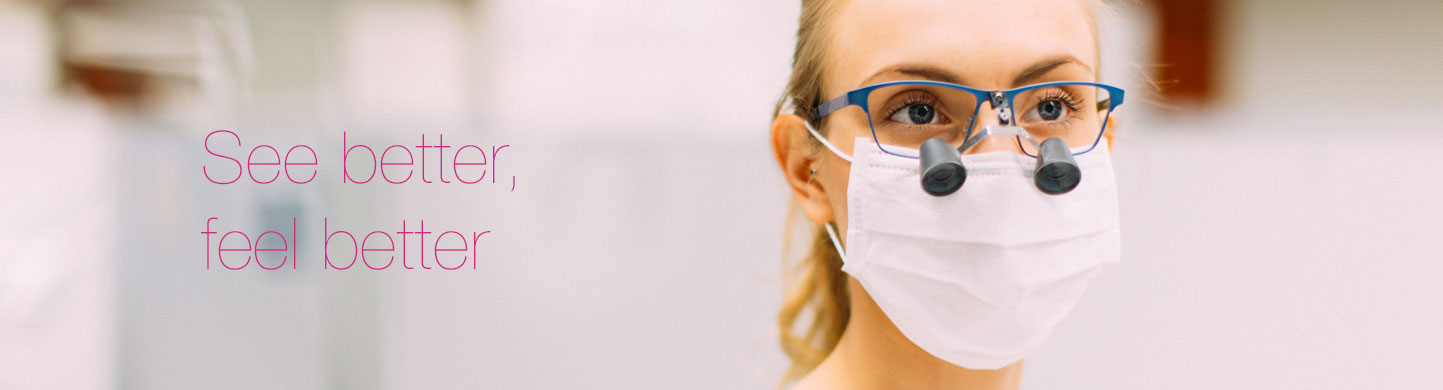 Working with the ultralight TTL loupe protects your back and neck – because the integrated prism aims your field of view up, which causes you to work with a straight back. Furthermore your eye corrections can be integrated into the loupe.